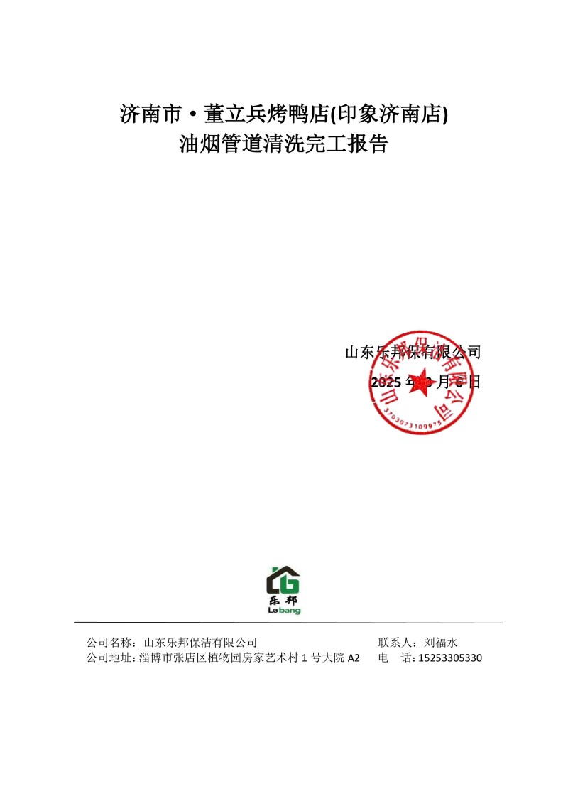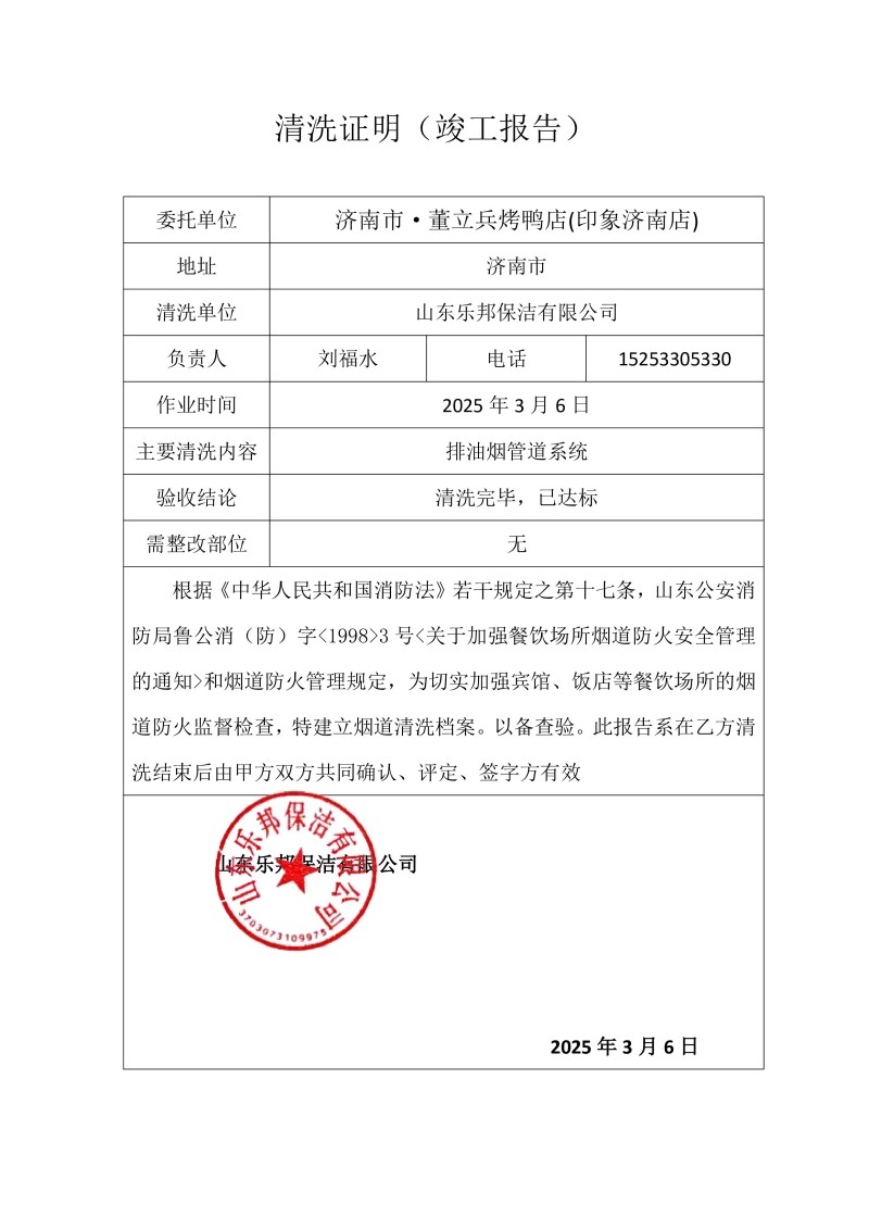 濟南市·董立兵烤鴨店(印象濟南店)清洗報告25.3.6