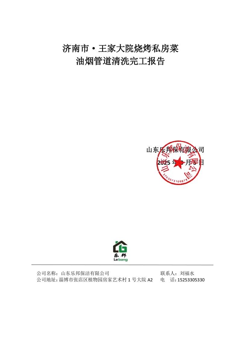 濟南市·王家大院燒烤私房菜清洗報告25.3.5