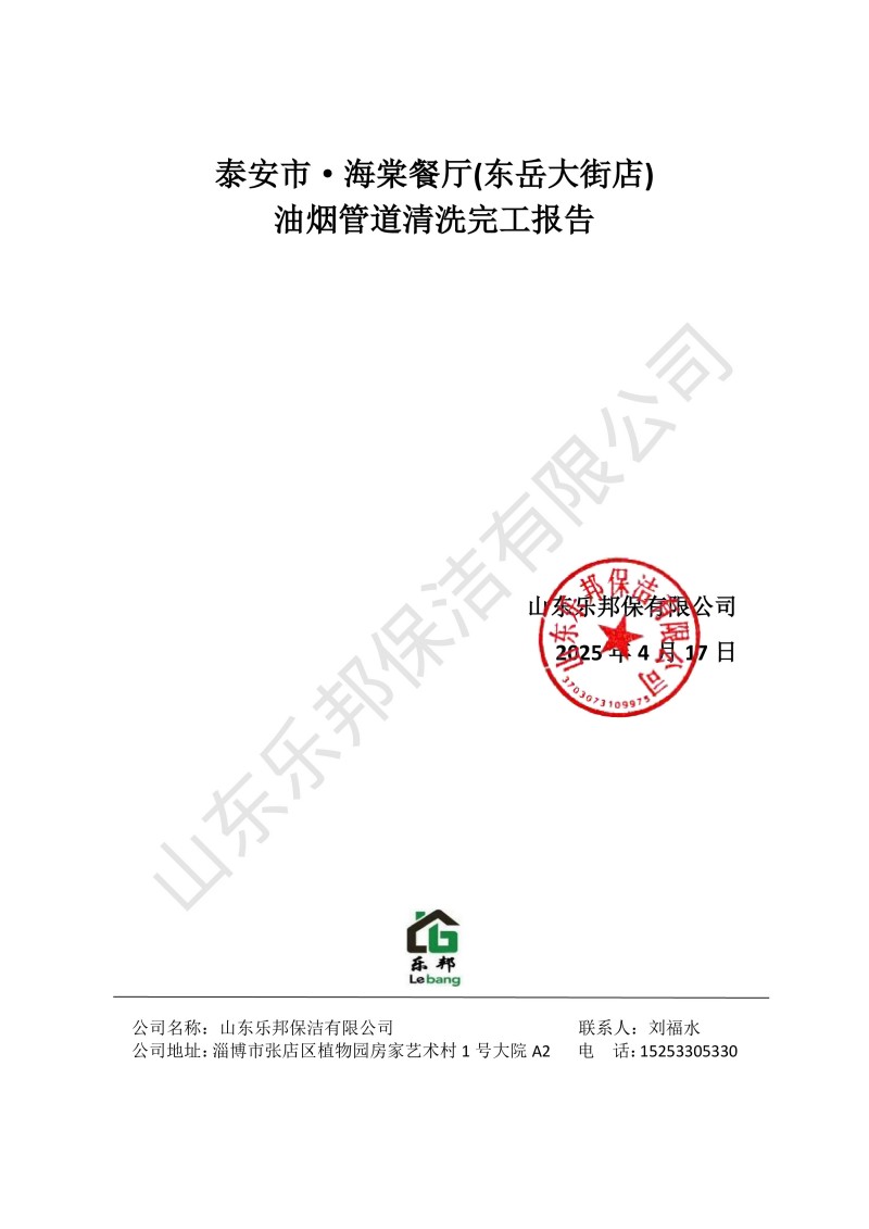 泰安市·海棠餐廳(開發區店)清洗報告25.4.19