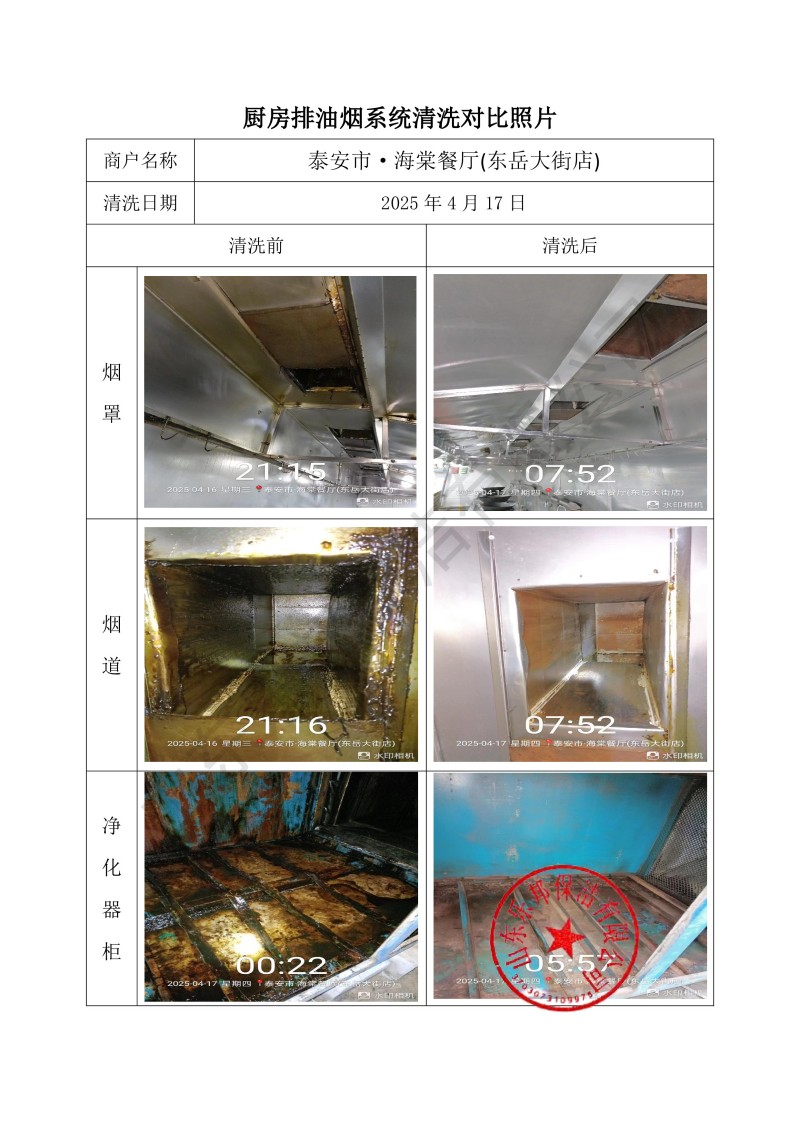 泰安市·海棠餐廳(東岳大街店)清洗報告25.4.17