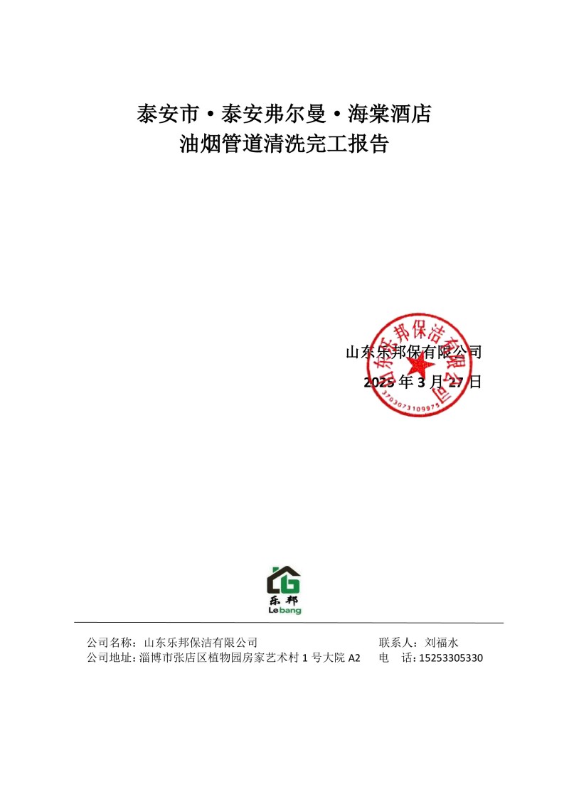 泰安市·泰安弗爾曼·海棠酒店清洗報告25.3.27