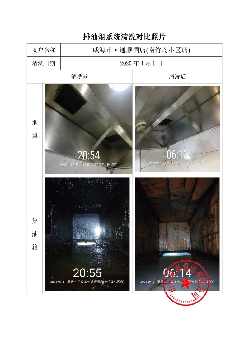 威海市·通順酒店(南竹島小區店)清洗報告25.4.1