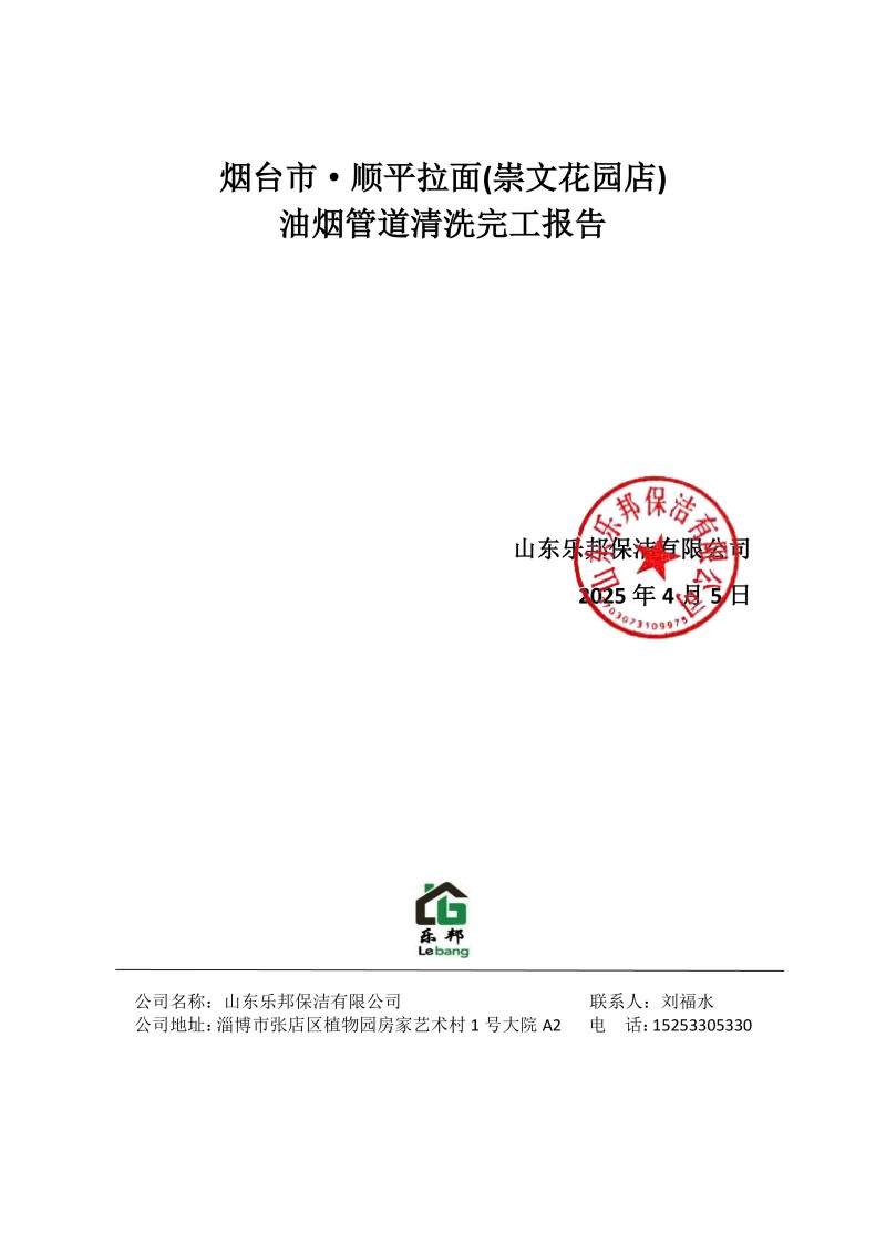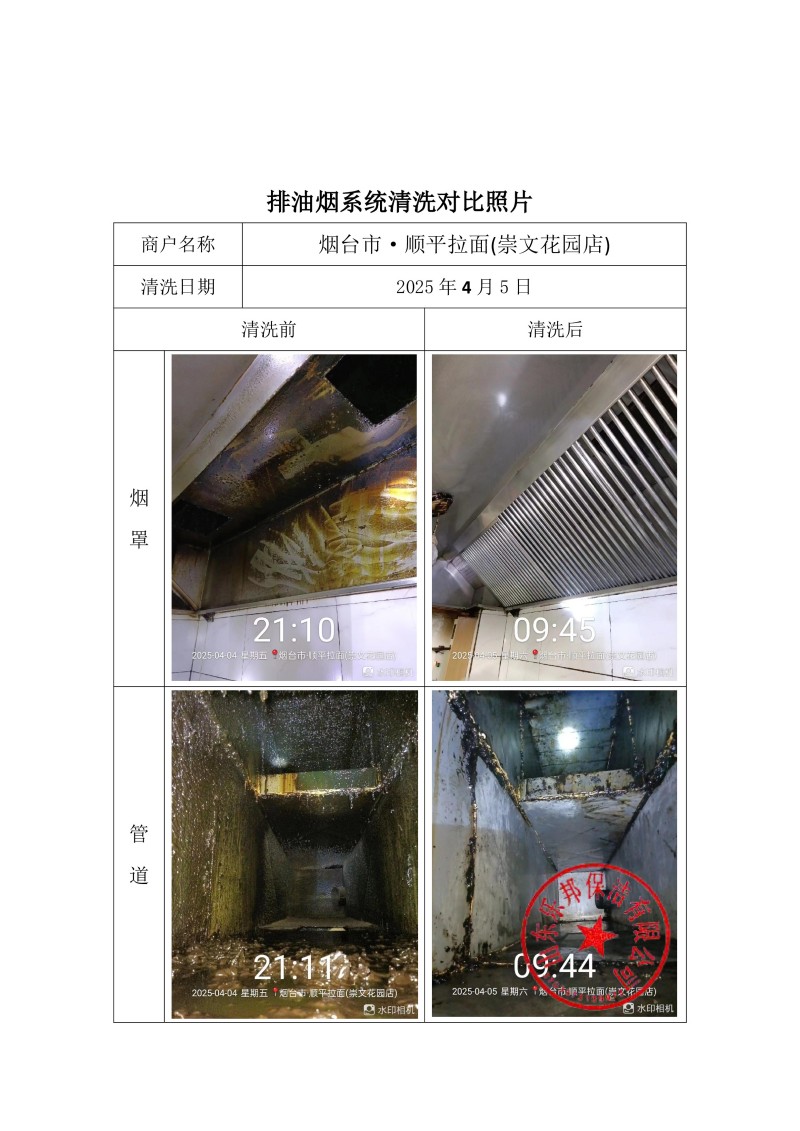煙臺市·順平拉面(崇文花園店)清洗報告25.4.5