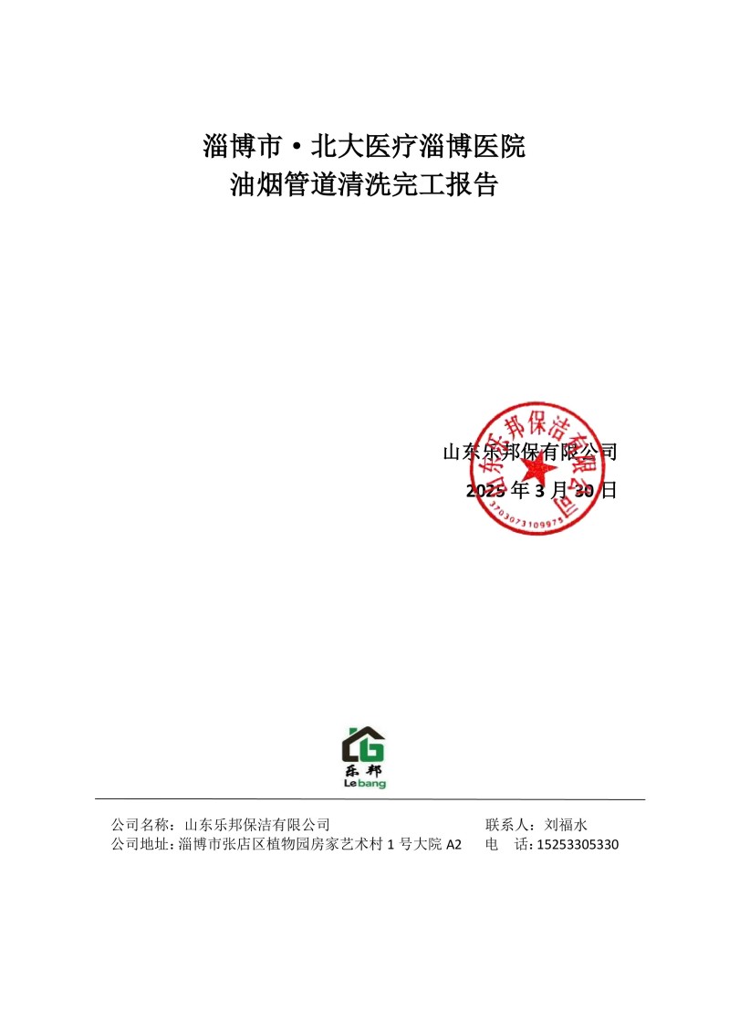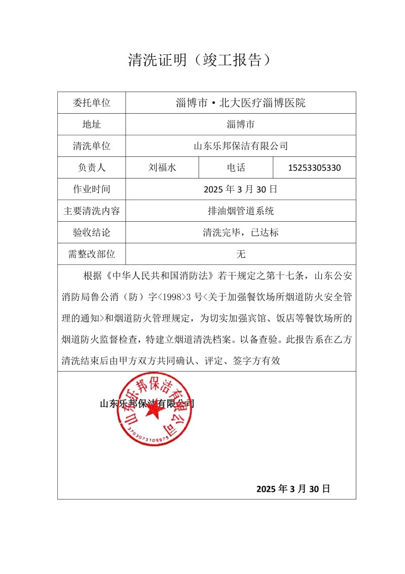 淄博市·北大醫療淄博醫院清洗報告25.3.30