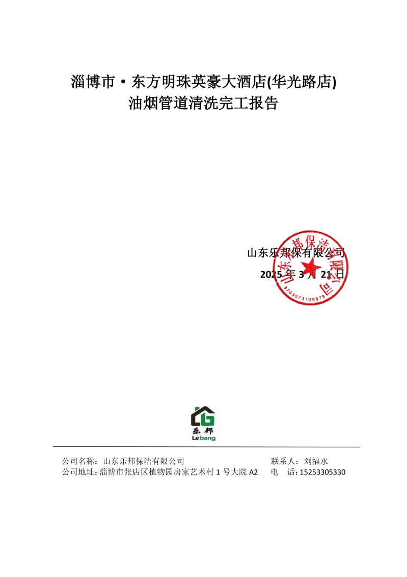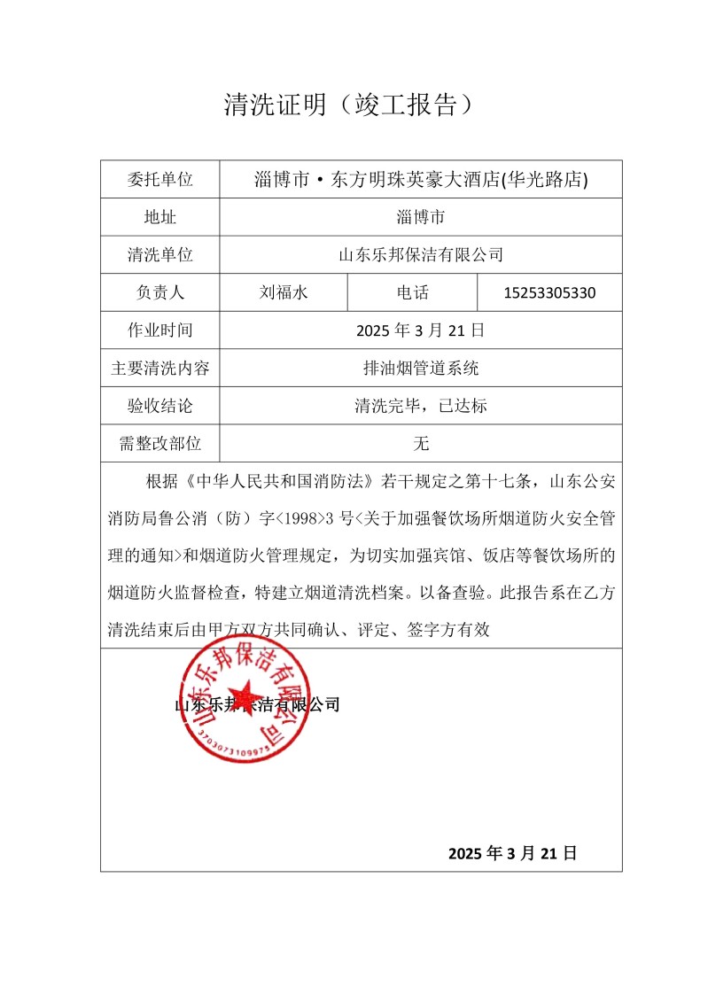 淄博市·東方明珠英豪大酒店(華光路店)清洗報告25.3.21