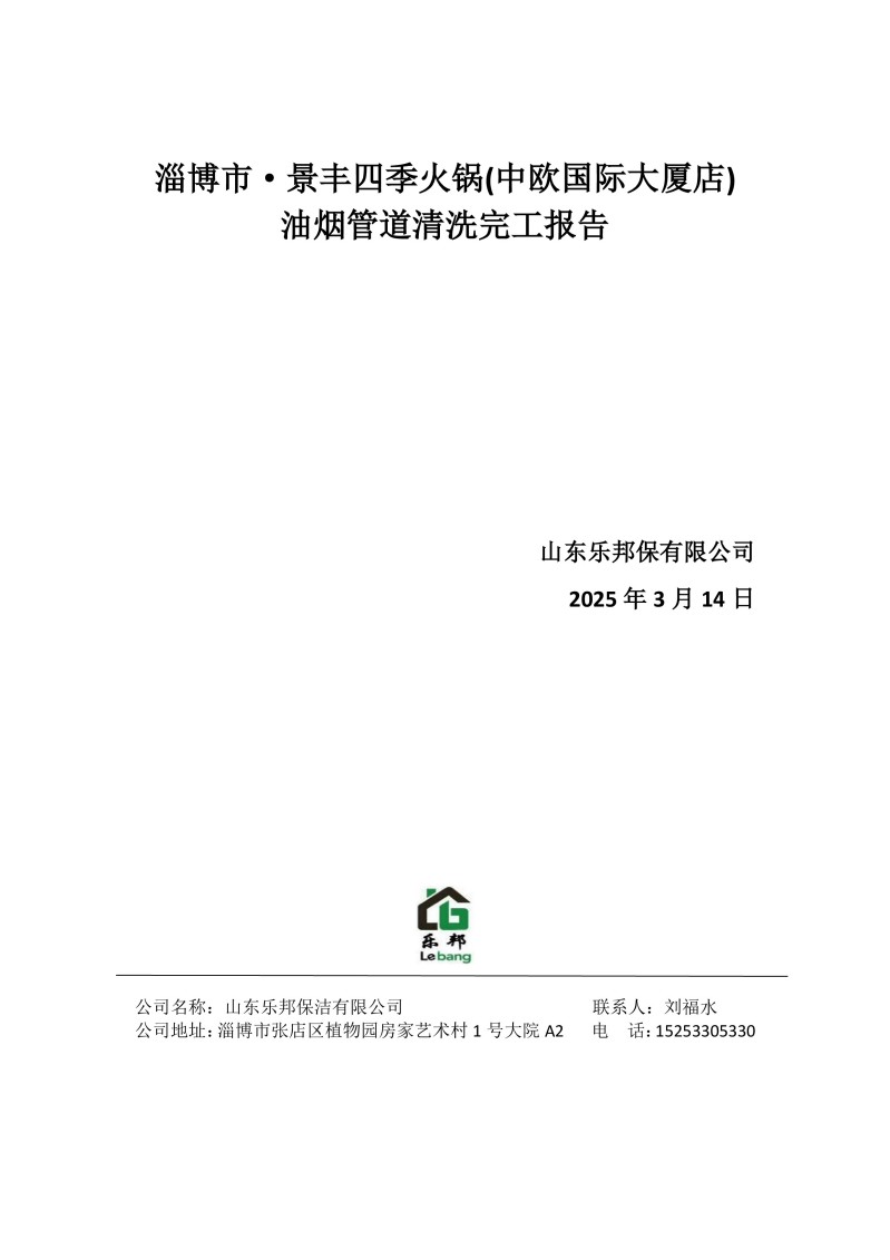 淄博市·景豐四季火鍋(中歐國際大廈店)清洗報告25.3.14