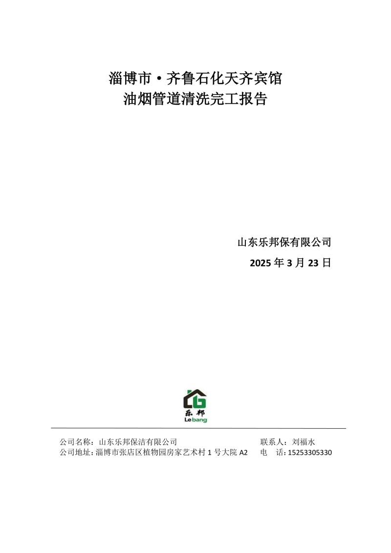 淄博市·齊魯石化天齊賓館清洗報告25.3.23
