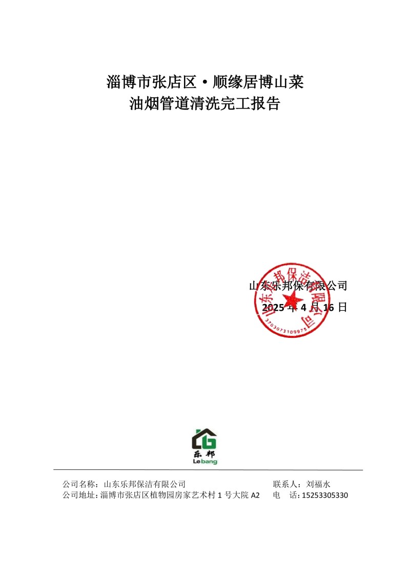 淄博市·淄博天齊元商務酒店清洗報告25.3.17