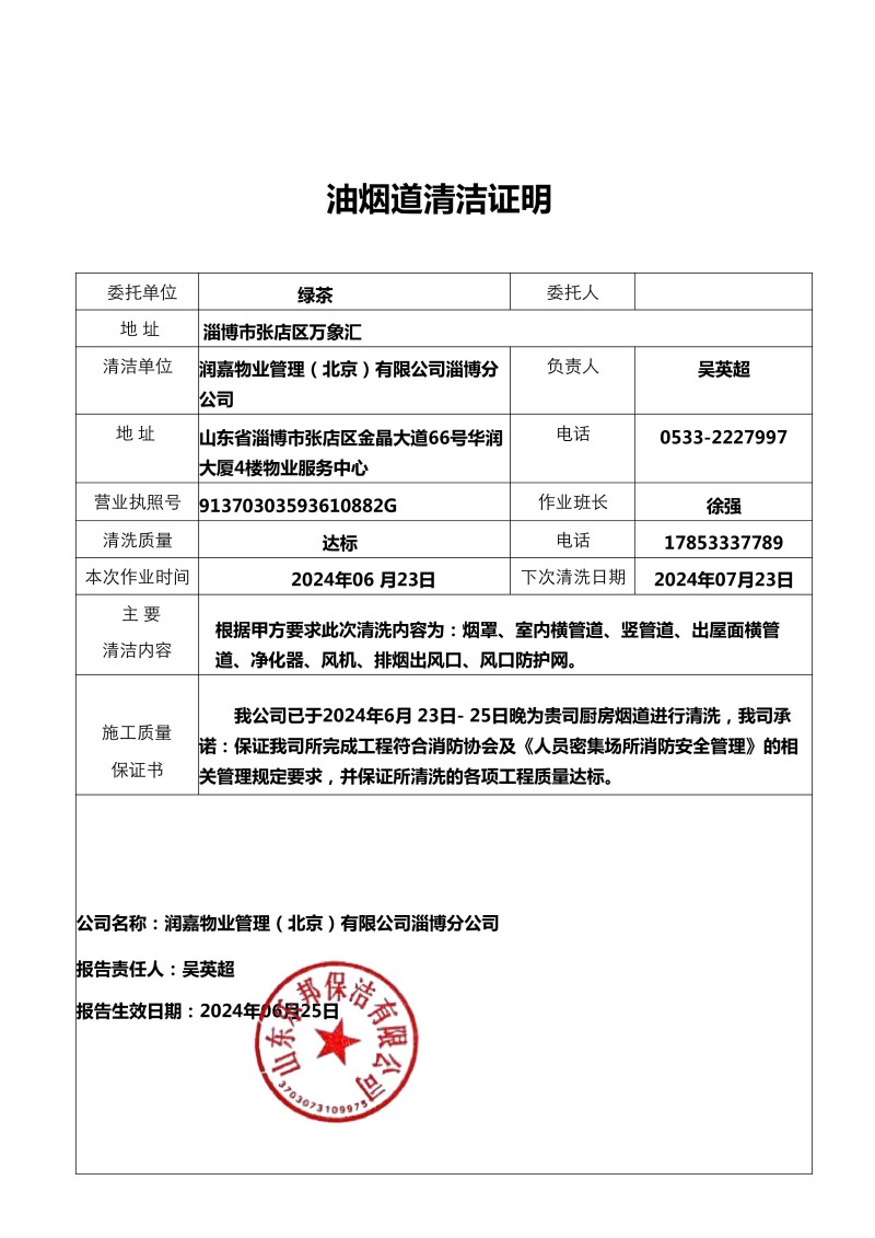 萬(wàn)象匯綠茶清洗報(bào)告24.10.17