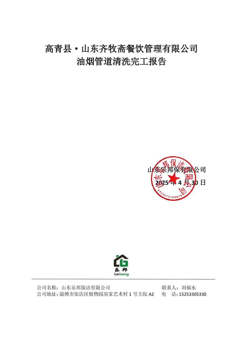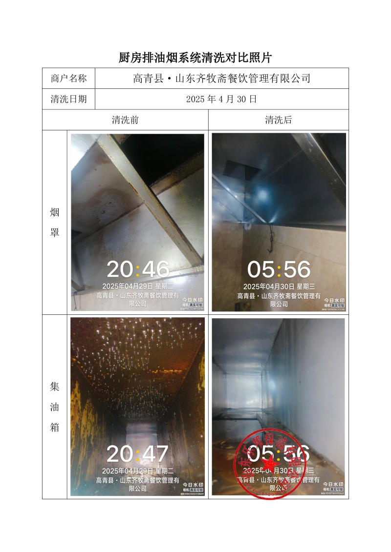 高青縣·山東齊牧齋餐飲管理有限公司清洗報告25.4.30