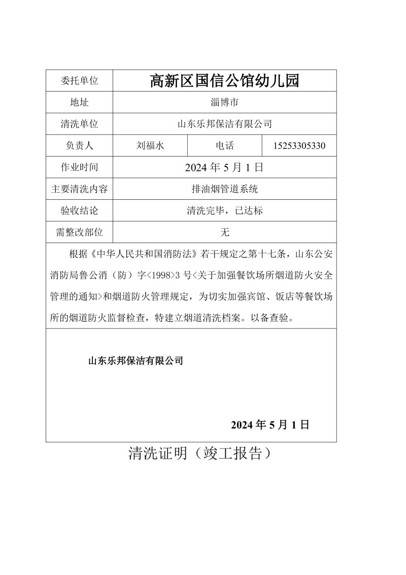高新區國信公館幼兒園清洗報告24.5.1