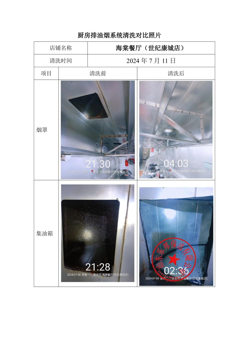 海棠餐廳(世紀(jì)康城店)清洗報(bào)告24.7.9
