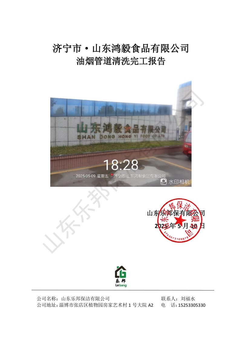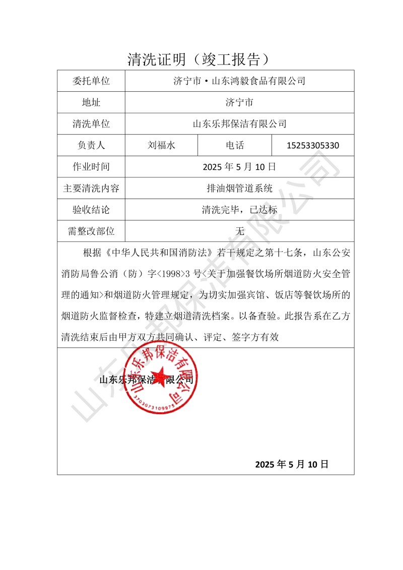 濟寧市·山東鴻毅食品有限公司清洗報告25.5.10