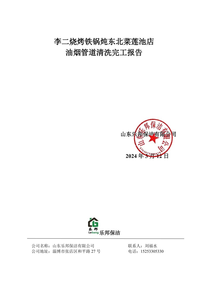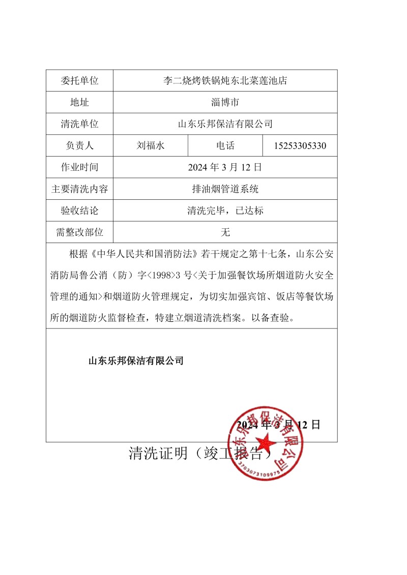李二燒烤鐵鍋燉東北菜蓮池店清洗報告24.3.12