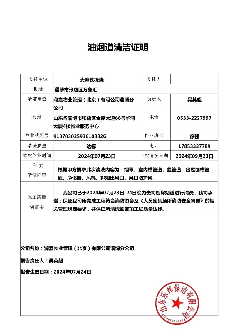 萬(wàn)象匯大漁鐵板燒清洗報(bào)告24.11.22