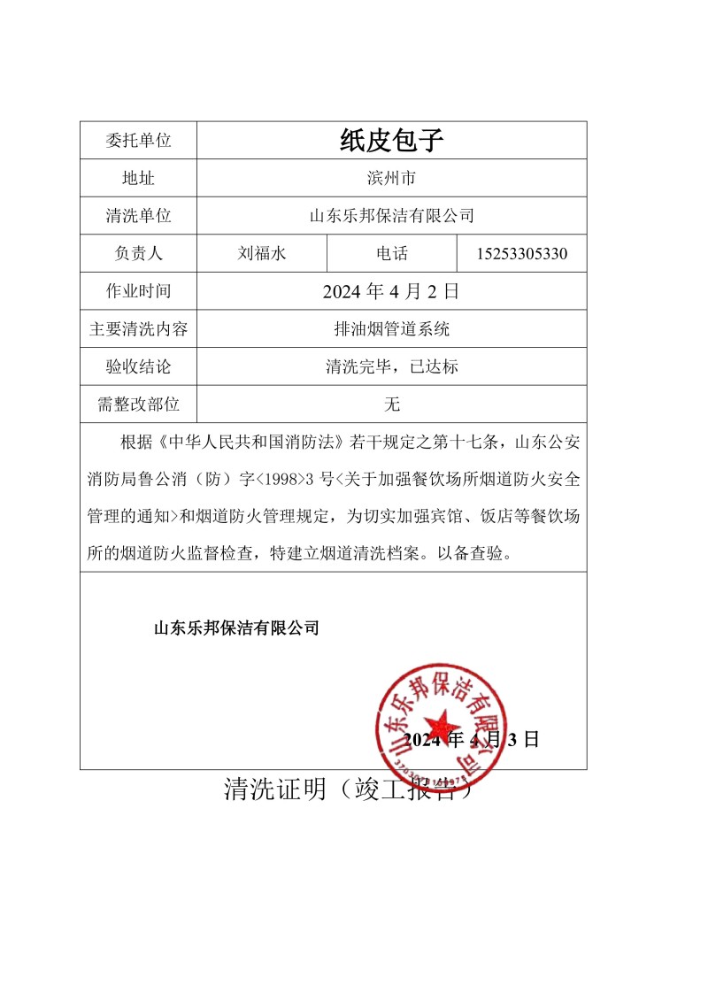 紙皮包子(鄒平店)清洗報告24.4.2