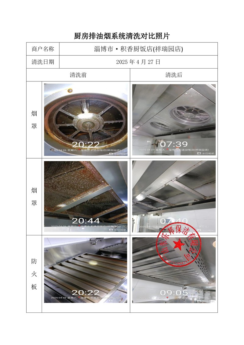 淄博市·積香廚飯店(祥瑞園店)清洗報(bào)告25.4.27