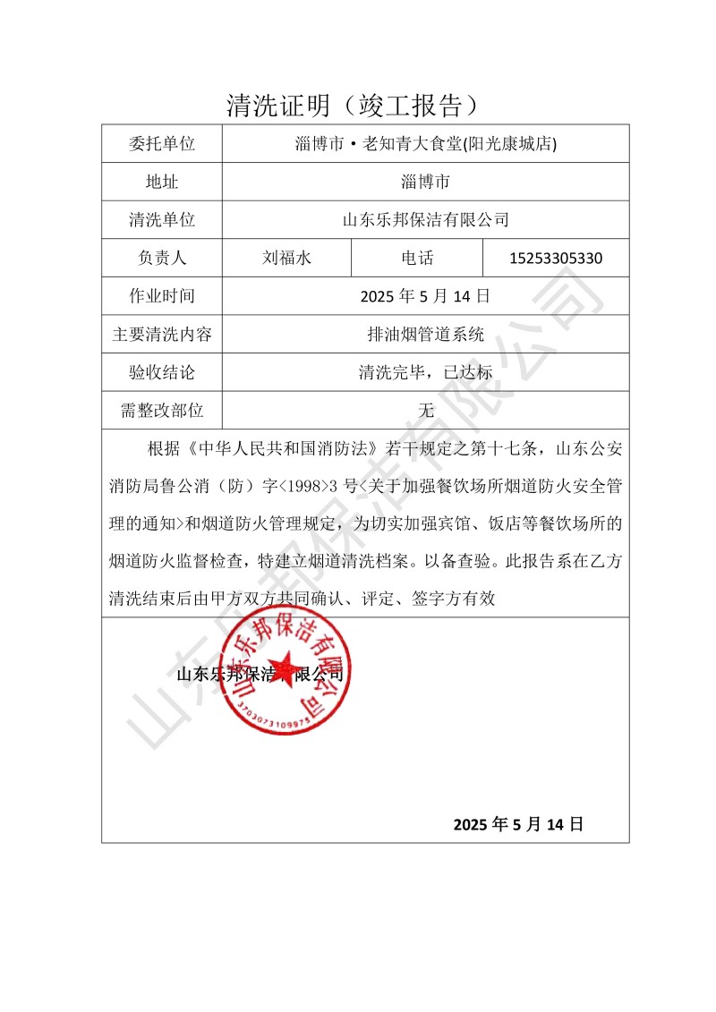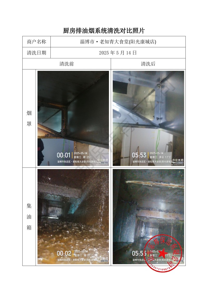 淄博市·老知青大食堂(陽光康城店)清洗報告25.5.14