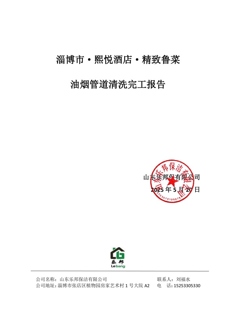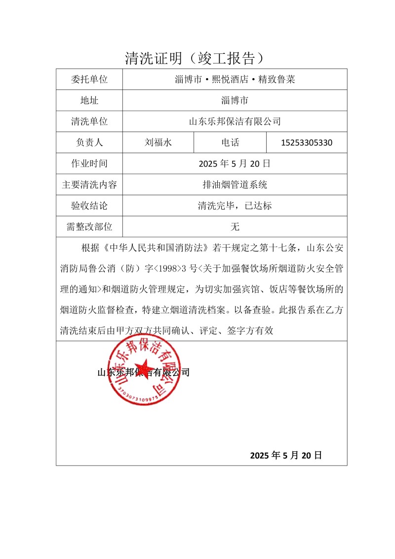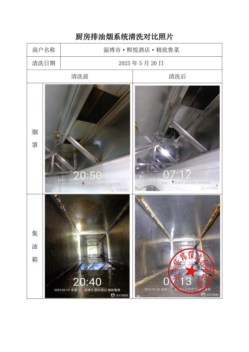 淄博市·熙悅酒店·精致魯菜清洗報告25.5.20