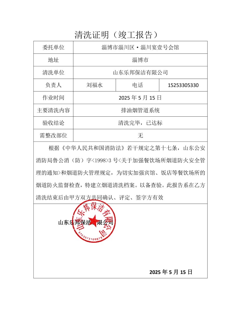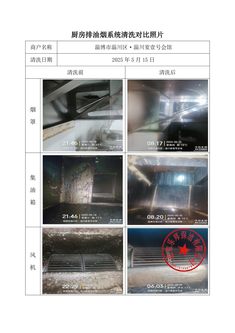 淄博市淄川區·淄川宴壹號會館清洗報告25.5.15